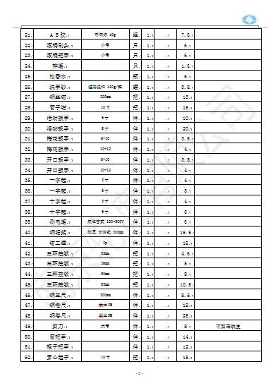 5. 采購清單中生產(chǎn)常用配件,后期采購實施過程中,如遇非清單內(nèi)材料,參照相似類別酌情采購。